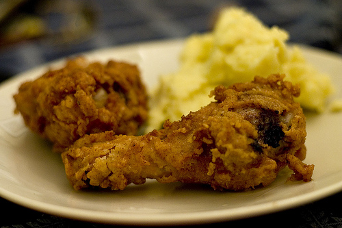 But I did have enough time make some fried chicken the other night.  I’ve tried quite a few recipes for fried chicken, including one I posted before. And while some of them have been good, I never quite found one that was perfect. I think I’ve come a lot closer.